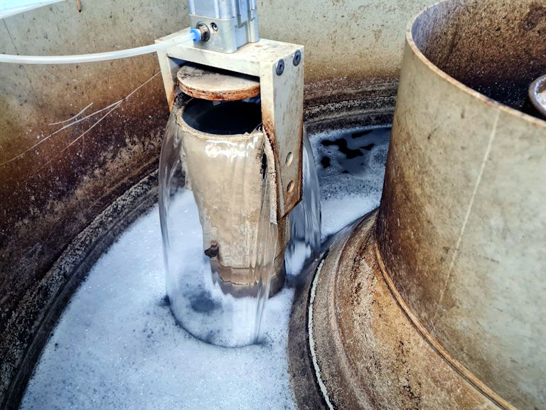 با آزادسازی فشار، حبابهای ریز هوا در پساب تشکیل میشوند.