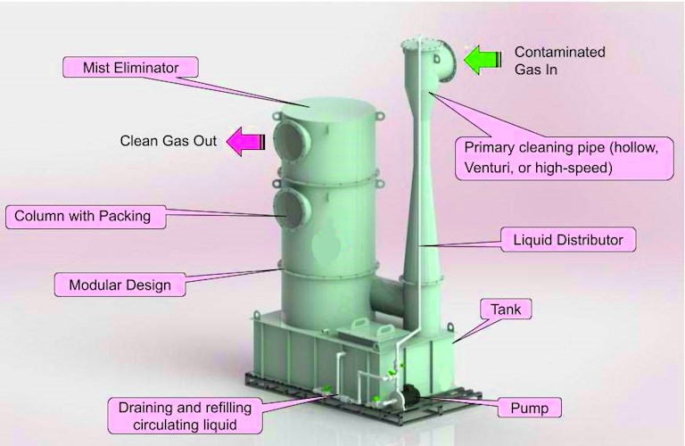 Eliminación altamente eficiente de partículas gruesas y algunos gases: Estos sistemas ofrecen una excelente separación de partículas medianas y gruesas (mayores de 5-10 micras), así como de gotas de niebla. Al añadir productos químicos al fluido depurador, también pueden absorber contaminantes gaseosos como el dióxido de azufre y el cloruro de hidrógeno.